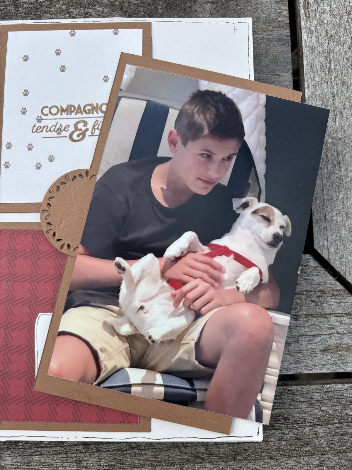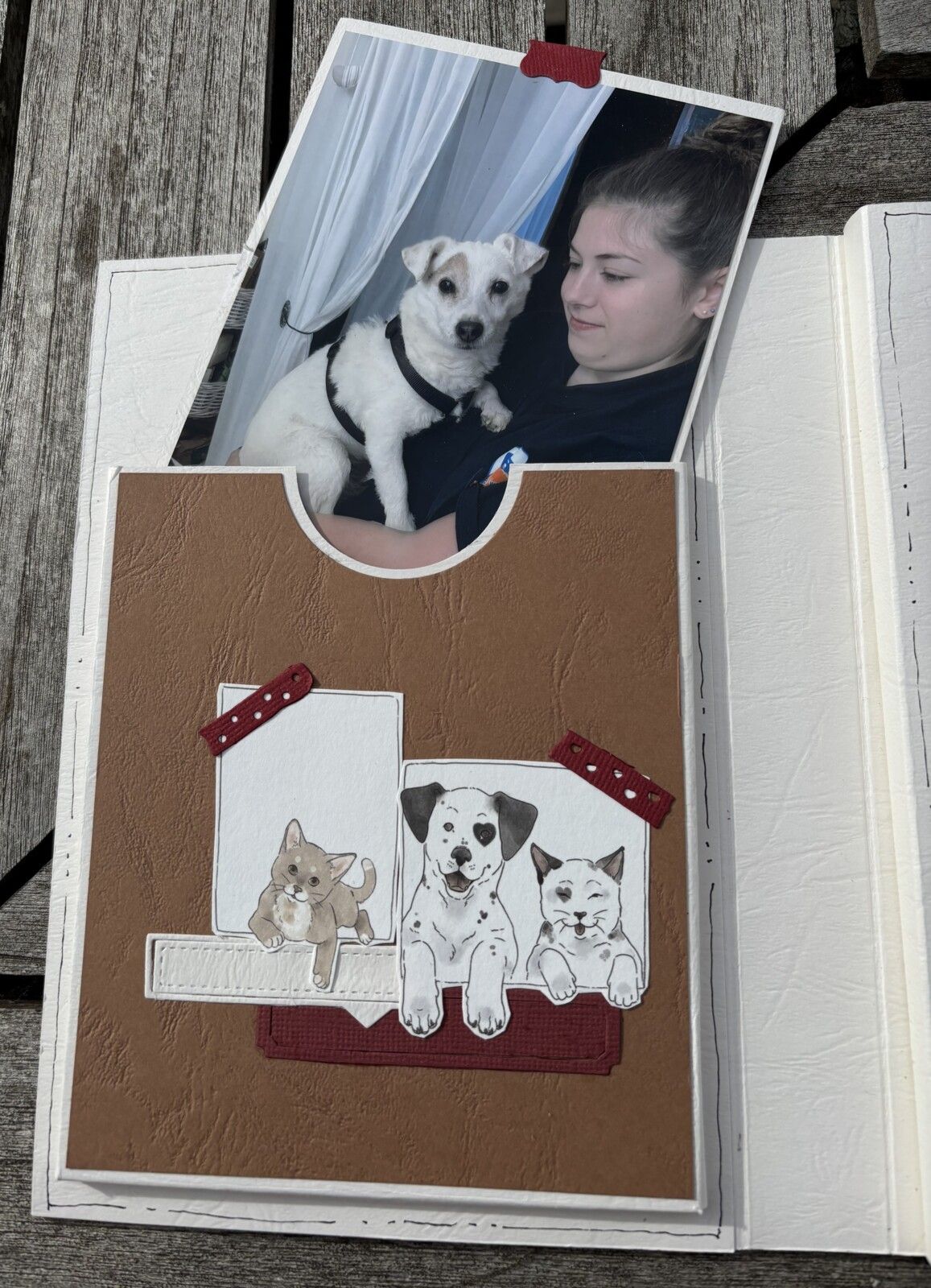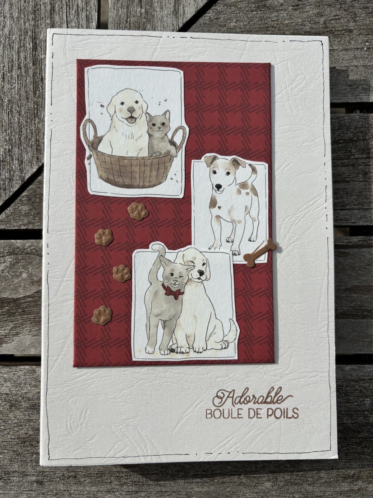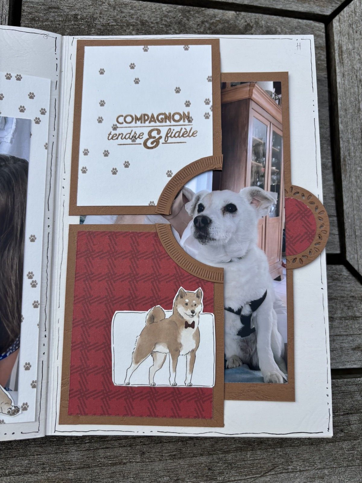 Je propose un nouveau petit album de 22 photos minimum ou l'on peut mettre des photos de chien ou de chat ou des 2 réunis. L'album est vendu en kit à 20€ avec toutes les découpes et tampons sur feuille. Idéal pour offrir un cadeau rapide à faire pour les fêtes...🙂